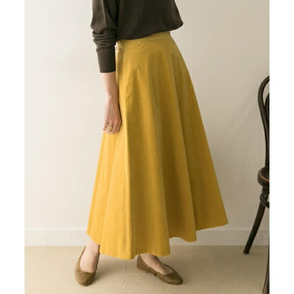 アーバンリサーチ(レディース)のレディススカート(コーデュロイフレアスカート)【程良い甘さを施した女らしい1枚】裾に向かってフレアーシルエットに仕上げ、フェミニンな印象を与えつつも、コーデュロイ素材が甘さを抑えカジュアルな印象をプラス。